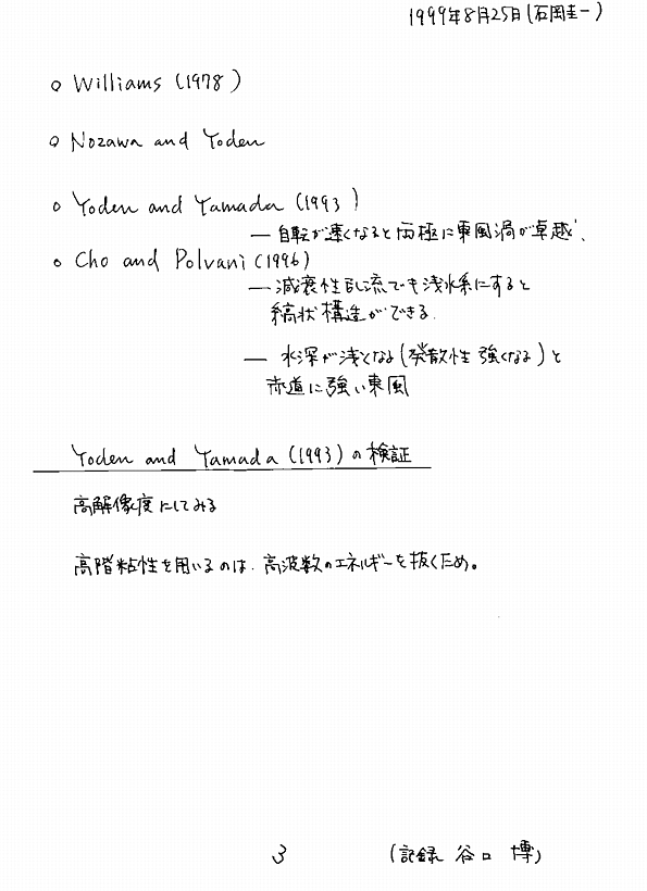 谷口博・奥山尚範 地球流体セミナー (GFD seminar) ノート